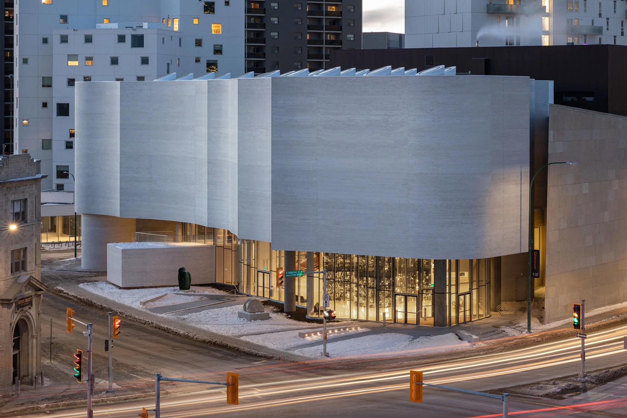 In collaboration with Canadian firm Cibinel Architecture, Maltzan took into consideration the uniqueness of the light in both Winnipeg and the Arctic to fashion a vibrant scalloped facade that is as in tune with the seasons as it is with the geometry of the original building, designed in 1971 by Gustavo de Rosa.